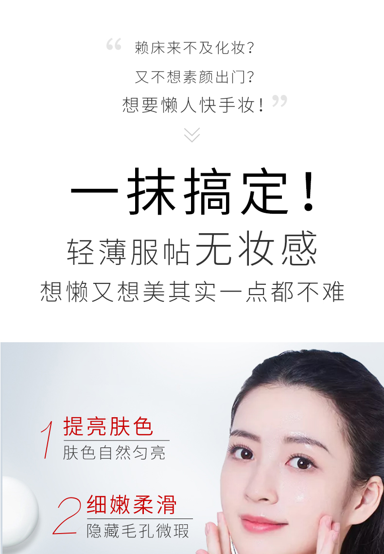 輕薄乳霜中加入溫和植萃精華,醇厚細(xì)膩,清爽不黏膩,給肌膚提供多種營養(yǎng)成分。遮暇肌膚、改善粗糙干燥,補(bǔ)水保濕光感透潤,溫和細(xì)膩、緊彈呵護(hù)美肌,盡享肌膚嬌嫩潤澤。